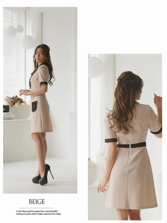 ミニドレス Belsia キャバドレス ベージュ 五分袖 ストレッチ 上品 キャバ ドレス キャバドレス ミニドレス ミニ キ