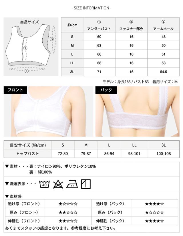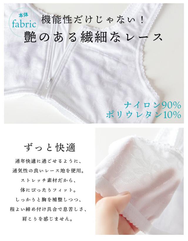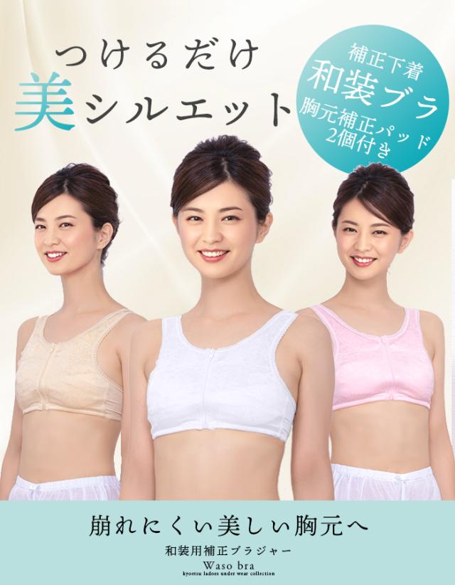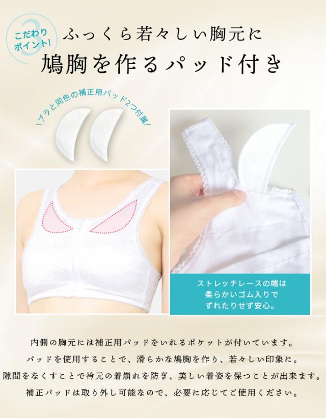 和装ブラ 和装ブラジャー 補正 下着 肌着 ブラジャー フロントファスナー ノンワイヤー 補正パット 着物 浴衣 レース 白 ベージュ ピンク S M L LL 3L(rg)