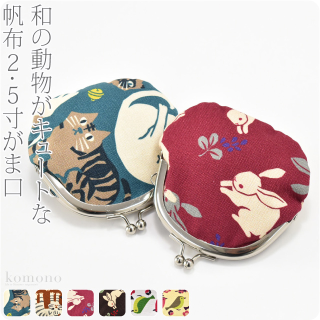 和テイストの動物がキュートな、帆布2.5寸がま口です。