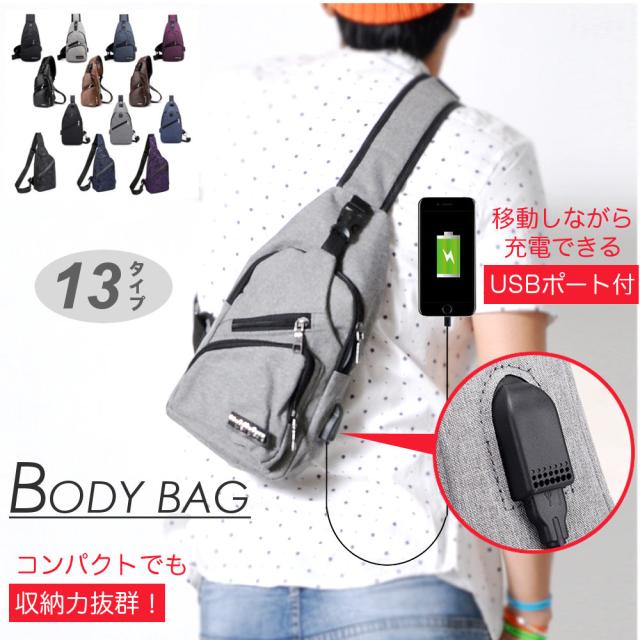 [半額クーポン配布中! 送料無料] ボディバッグ USBポート付 #A909c1 男女兼用 ワンショルダー サコッシュ バック カバン 鞄 M便