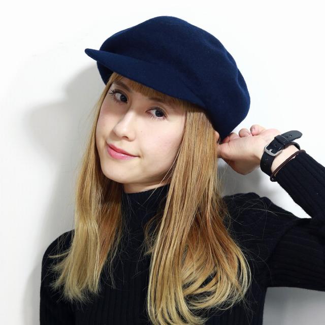 レディース 秋冬 バスクキャスケット 毛100% メリノウール/紺 ネイビー