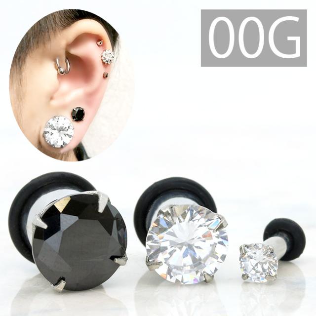 ボディピアス 00G 軟骨ピアス 立爪 ジュエル 00ゲージ シングルフレア アイレット サージカルステンレス 耳 ラージゲージ ホール 凛 RIN