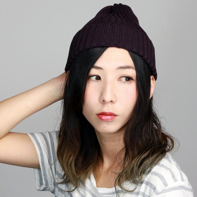 ニット帽 HIGHLAND 2000 コットンニット リブ ニットワッチ メンズ 春夏 帽子 レディース ハイランド2000 ELTON VALR YARN ダークパープル