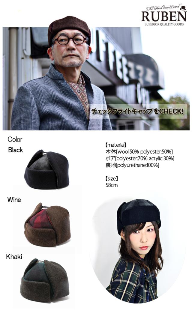 秋 冬 フライトキャップ チェック イヤーマフ付きの帽子 RUBEN イヤーフラップ CAP ルーベン カジ