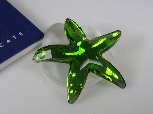 スワロフスキー 2007年 廃盤品 『Cantillana ヒトデ』です。テーマ「Exotic Fish & South Sea」の1つ。魅惑的なグリーンに輝くヒトデ。すりガラス加工のクリスタル製台座が付属しています。