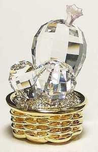 スワロフスキー 2001年 廃盤品 『サボテン, Rosaline』です。テーマ「Crystal Garden」の1つ。丸い植木鉢に植えられたフルファセットのサボテンにはロザリンクリスタルのお花があしらわれています。メタル部分には18Kゴールドプレートを施しています。
