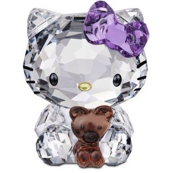 スワロフスキー 『ハローキティ Hello Kitty Bear』です。お気に入りのテディベアを抱きしめるハローキティ。リボンはヴァイオレット・クリスタル、鼻はライト・トパーズ、目はジェットクリスタル。ひげはプリントしています。