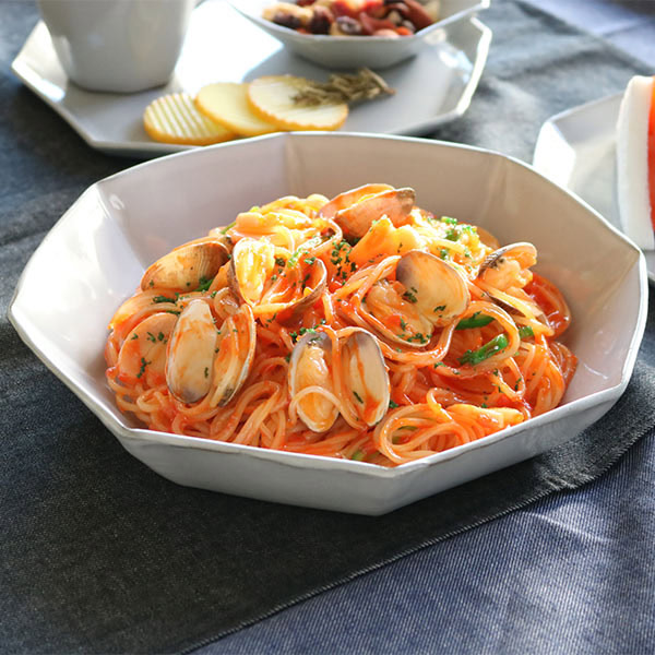 一人分のパスタを入れるのにちょうど良いパスタプレートです。深さがあるのでカレーやシチュー皿としてもご利用いただけます。