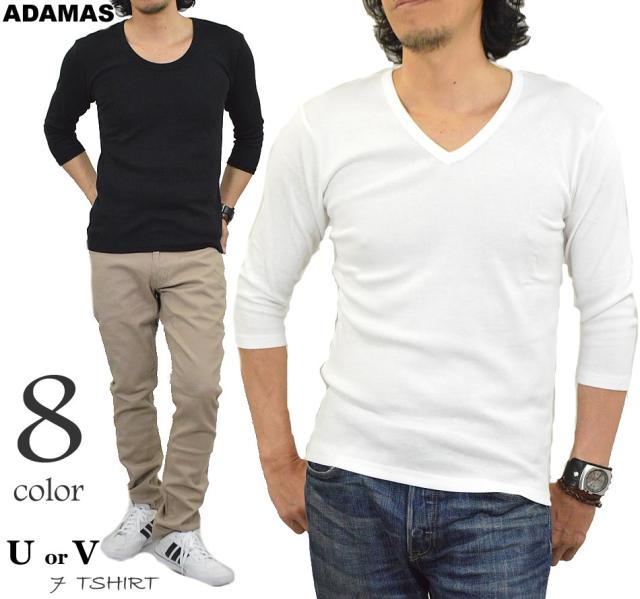 スマートに魅せる七分袖Tシャツ!【U】ネックor【V】ネックが選べる♪