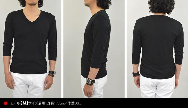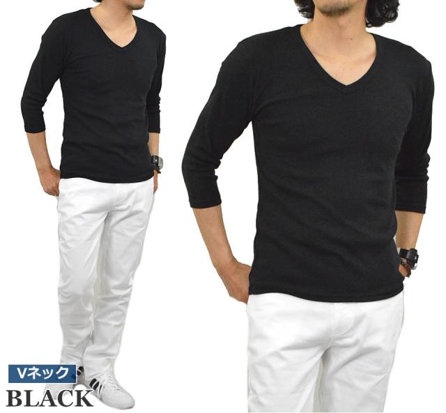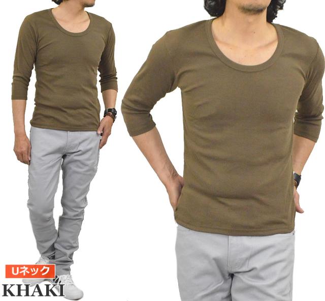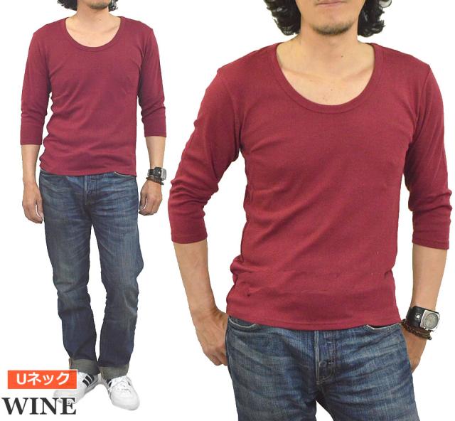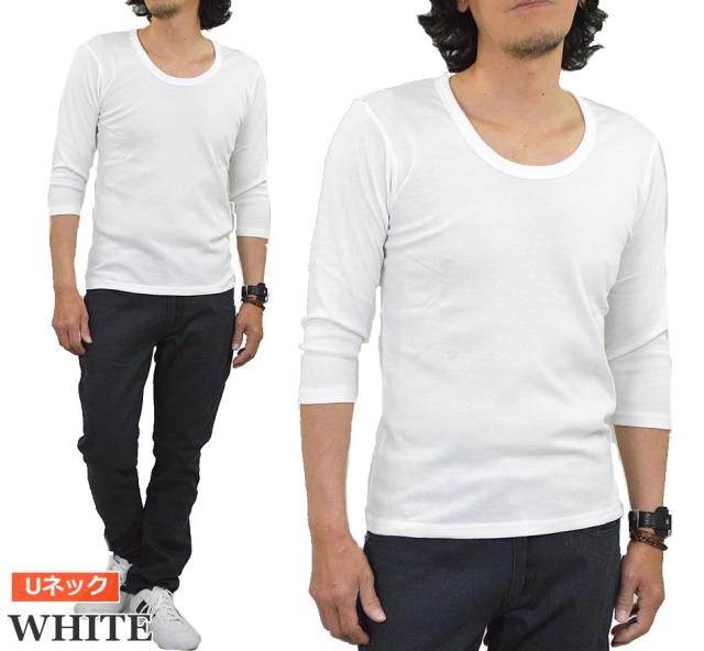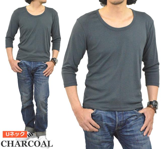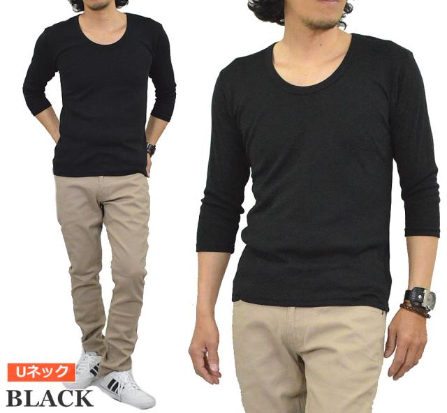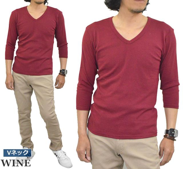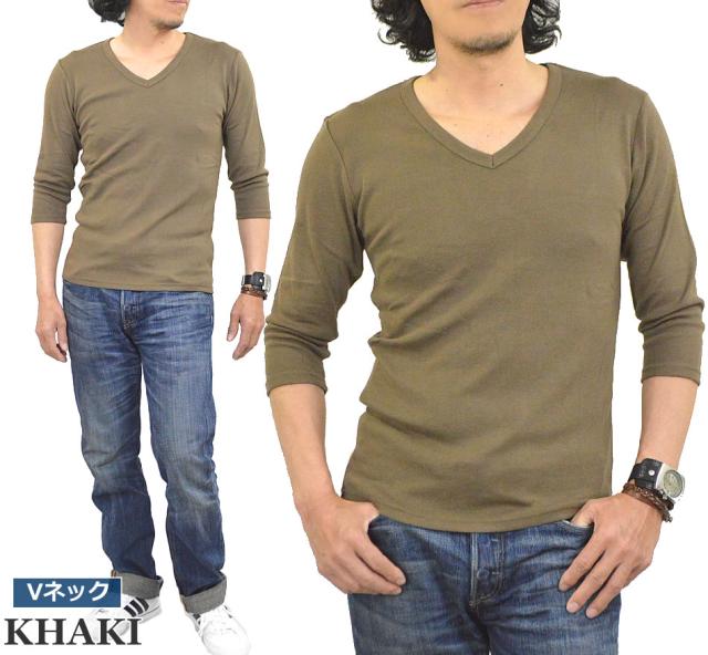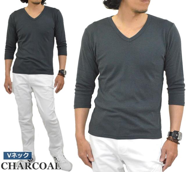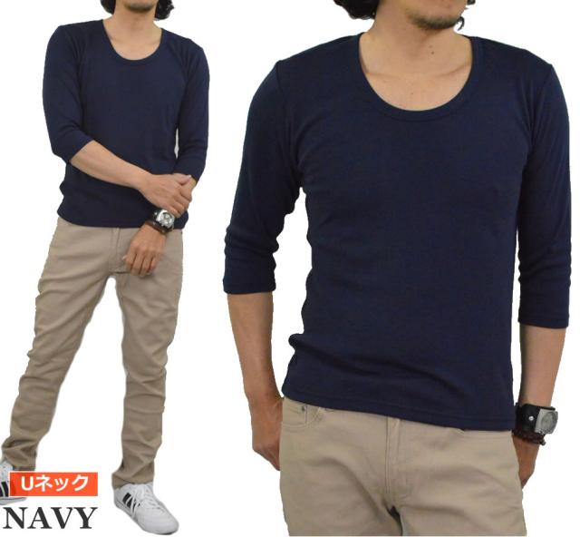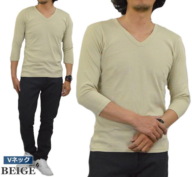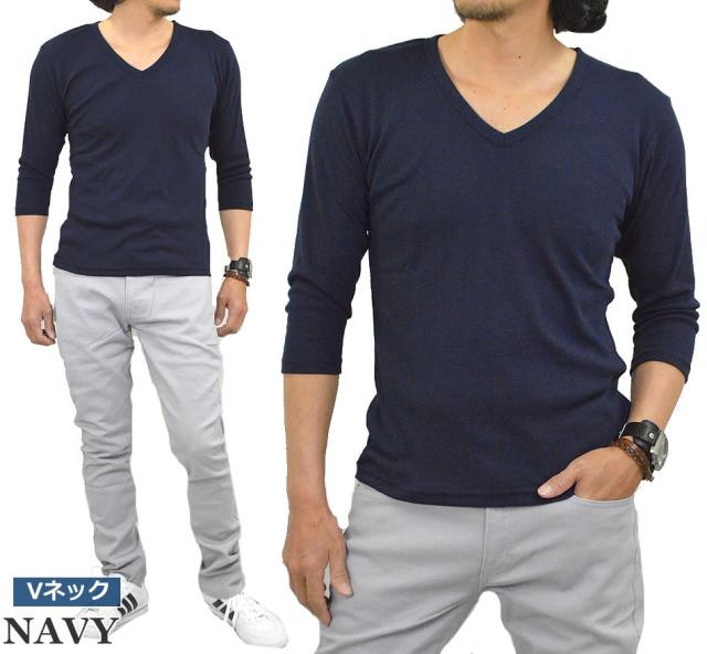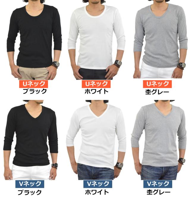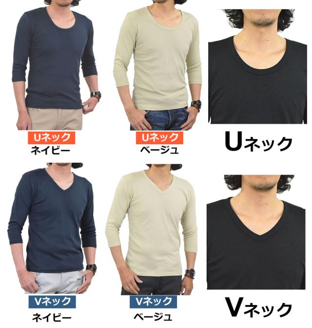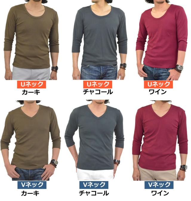 新作 Tシャツ メンズ 七分袖 無地 カットソー Uネック Vネック コットン 綿 ポリエステル 長袖と半袖の中間丈 7分袖Tシャツ メール便送料無料