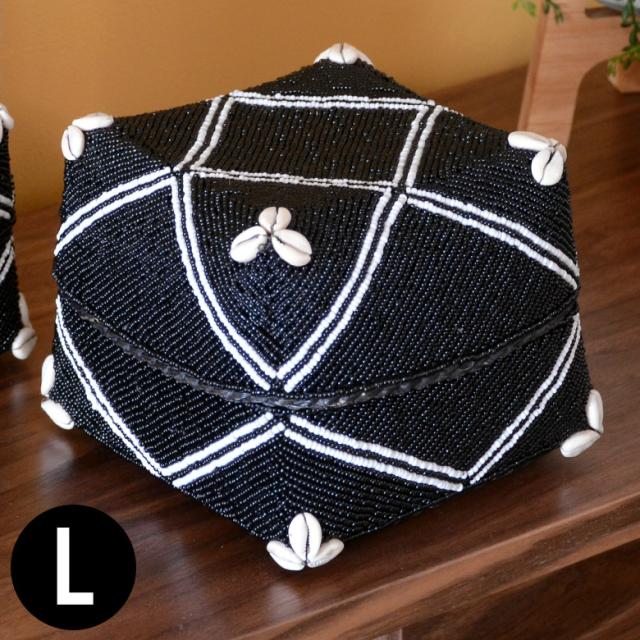 収納ケース 収納ボックス ビーズ製 蓋つき ダイヤ柄 約20×20cm ブラック アジア雑貨 バリ雑貨 アジアン リゾート おしゃれ