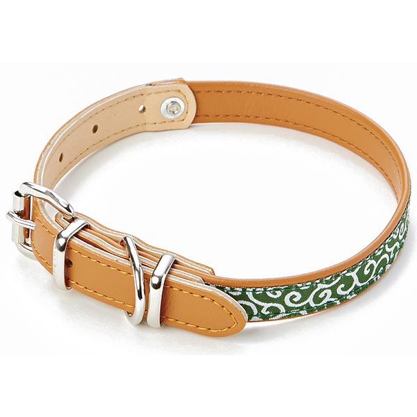 ペティオ 犬雅 唐草 平首輪 カラー M グリーン 緑 合皮 レザー ブルテリア・ボーダーコリー等 中型犬用 国産 人気の和柄デザイン 〜20kg Petio