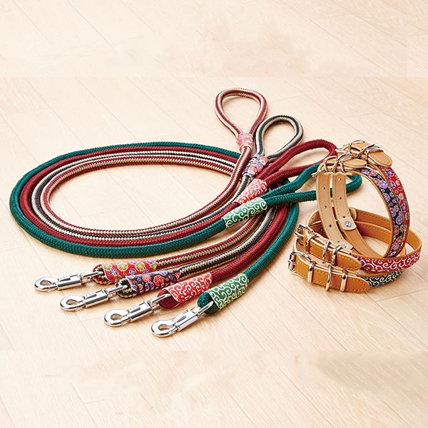 毎日のお散歩に気兼ねなく使える超小型犬から中型犬までのシリーズ。合皮と和柄を組合せた高級感あるデザイン。