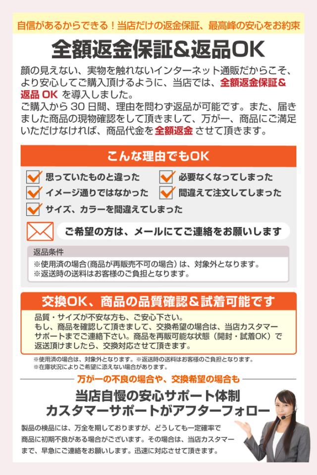万が一の不良の場合は、交換・返品などの対応をさせて頂きますので、ご連絡をお願いします。