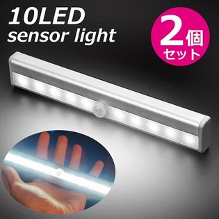 人感センサーライト 2個セット LED 10灯 LEDライト バータイプ 電池式 人感 センサーライト 乾電池 フットライト 感知式 小型 玄関 クローゼット 押し入れ 廊下 防犯 節電 送料無料 ポイント消化
