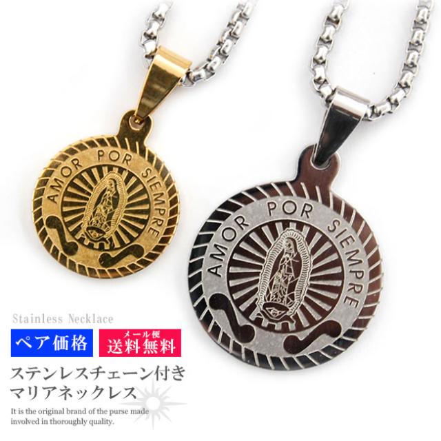 メール便送料無料 ステンレスペンダント ネックレス メンズ レディース ユニセックス ペア 316Lサージカルステンレス マリア チェーン付き ゴールド シルバー【ギフト】 snc023