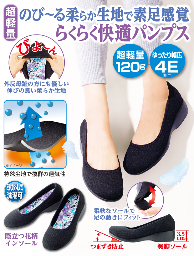 パンプス 軽い オフィスパンプス 軽量のびのびパンプス L 外反母趾