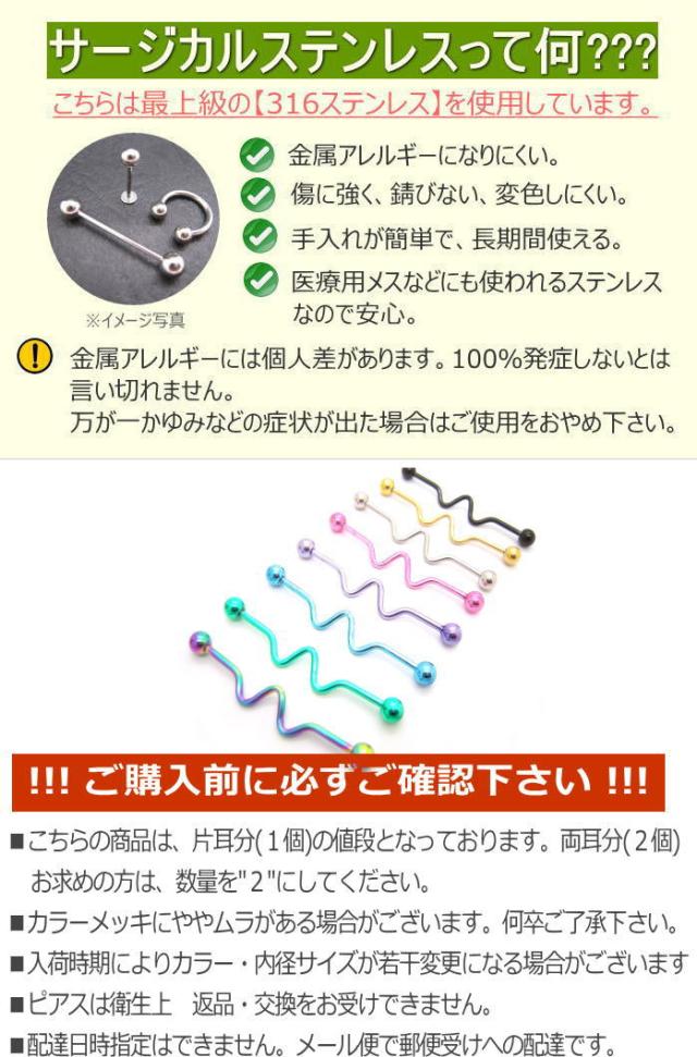 《関連キーワード》ボディピアス ボディーピアス ボディピ ピアス アクセサリー 14G 14ゲージ サージカルステンレス 内径 有効軸 シャフトへリックス 軟骨 ピアス 青い目 メール便