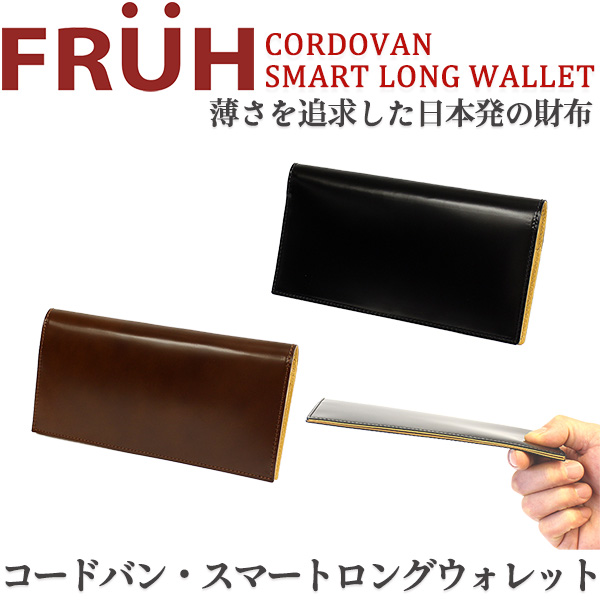 コードバン 長財布 FRUH(フリュー)スマートロングウォレット‐日本製 馬革 ヌメ革 薄い 財布 革財布 メンズ GL021 直送