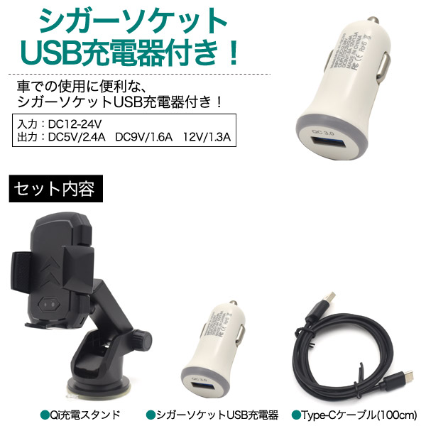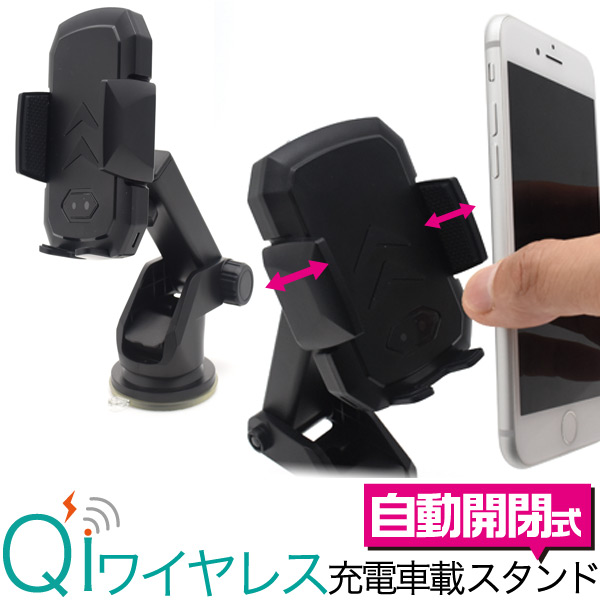 Qiワイヤレス充電スタンド 車載用 自動開閉式 角度自由自在 滑り止め付き 車載用充電器 Qi対応スマートフォン用 車載スタンド 旅行 出張 ドライブ
