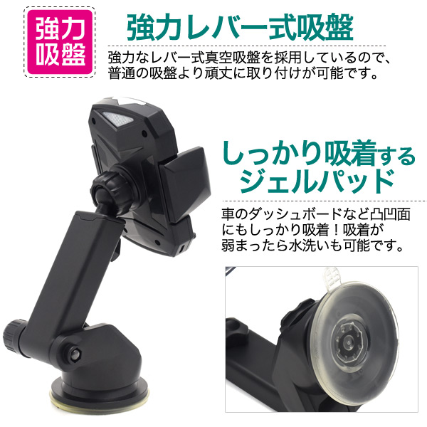 ● 強力レバー式吸盤!しっかり吸着するジェルパッド!