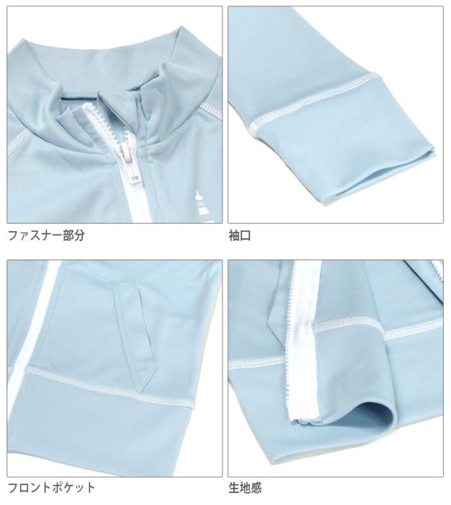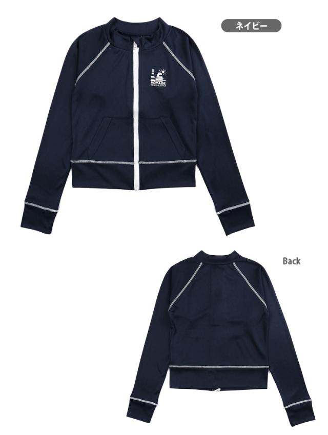 シンプルなデザインの前開きラッシュガードです。