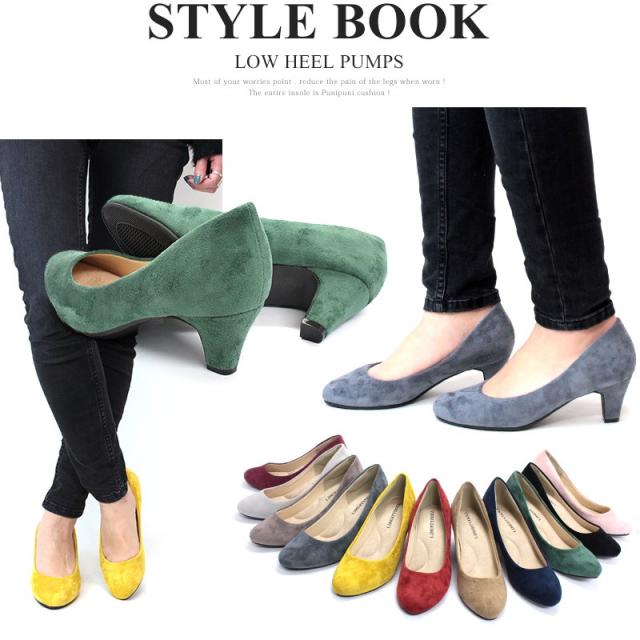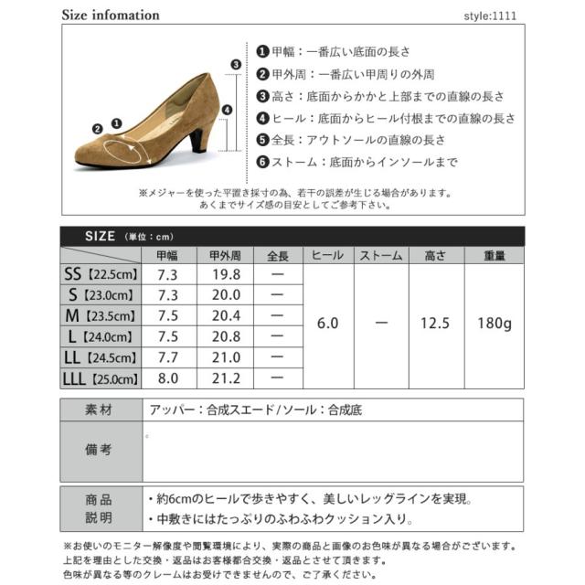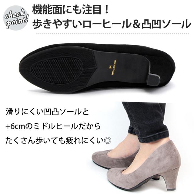 パンプス 痛くない ミドルヒール 1111 22.5-25cm 柔らかい クッション インソール 低反発 靴 クツ 走れる アーモンドトゥ スエード レザー 合成皮革 黒 ブラック ベージュ ネイビー プチプラ 通勤 レディース