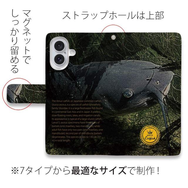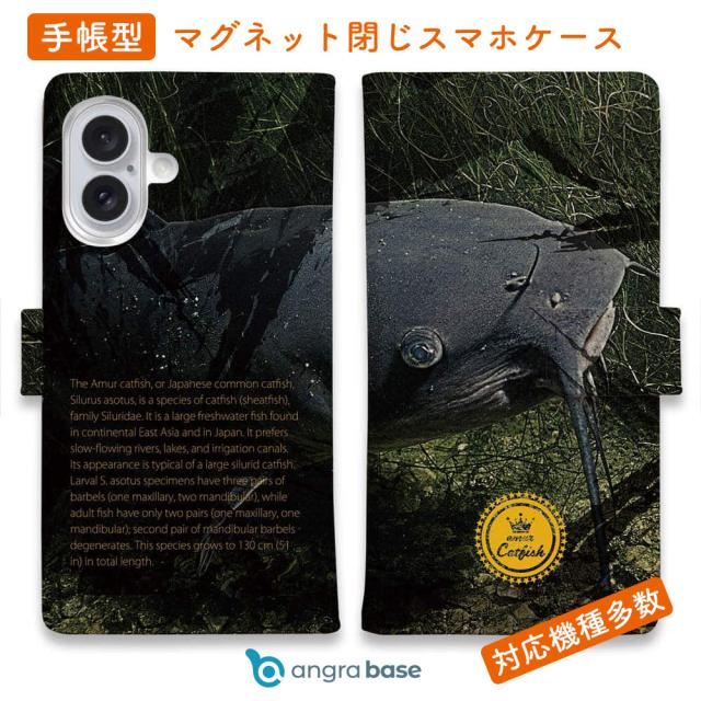 スマホケース 手帳型 カード収納 マグネット iPhone17 Pro Max iPhone Air iPhone16e iPhone16 Pro Max 16 Plus 15 Pro Max Xperia 10 VII Galaxy AQUOS ARROWS Pixel10 XL 釣り 魚 ルアー ナマズ キャットフィッシュ