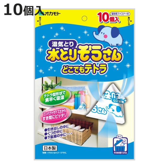 除湿剤 水とりぞうさん どこでもテトラ 10個入り ( クローゼット 押入れ 部屋 防湿剤 乾燥剤 水とりゾウさん 吸湿量 20g 10個 吸湿 除湿 梅雨 湿気対策 カビ カビ対策 湿気取り 防カビ 日本製 )
