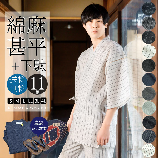 【甚平+下駄セット】 甚平 メンズ 甚平 大きいサイズ 父の日 ギフト プレゼント 涼やかな綿麻甚平 甚平下駄セット じんべい サイズ:S M L LL 3L 4L 6サイズ 綿麻 f_fashion
