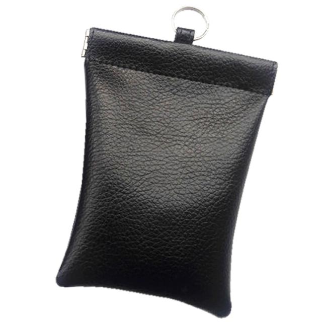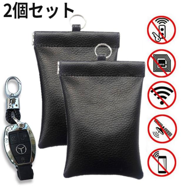 スマートキー リレーアタック リレーアタック対策 電波遮断ポーチ パカっと開く 本革 ブラック 【2個セット】