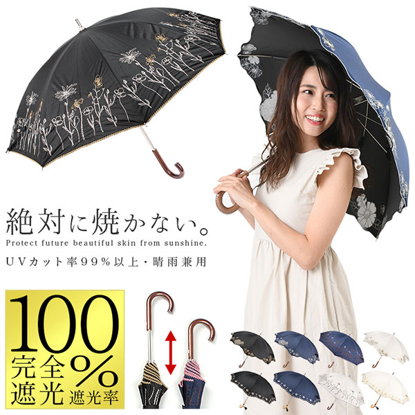 日傘 完全遮光 遮光率100% レディース 雨傘兼用 晴雨兼用 長傘 UVカット99.9% UPF50+ 耐風 ワンタッチ ジャンプ 深張り レディース 傘 晴れ雨兼用 雨晴れ兼用 送料無料 軽量 スライド式 ショート