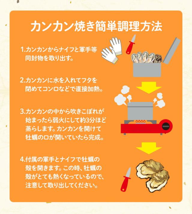 さらに牡蠣を美味しく蒸し焼きするための缶、ナイフ、軍手も付いています。