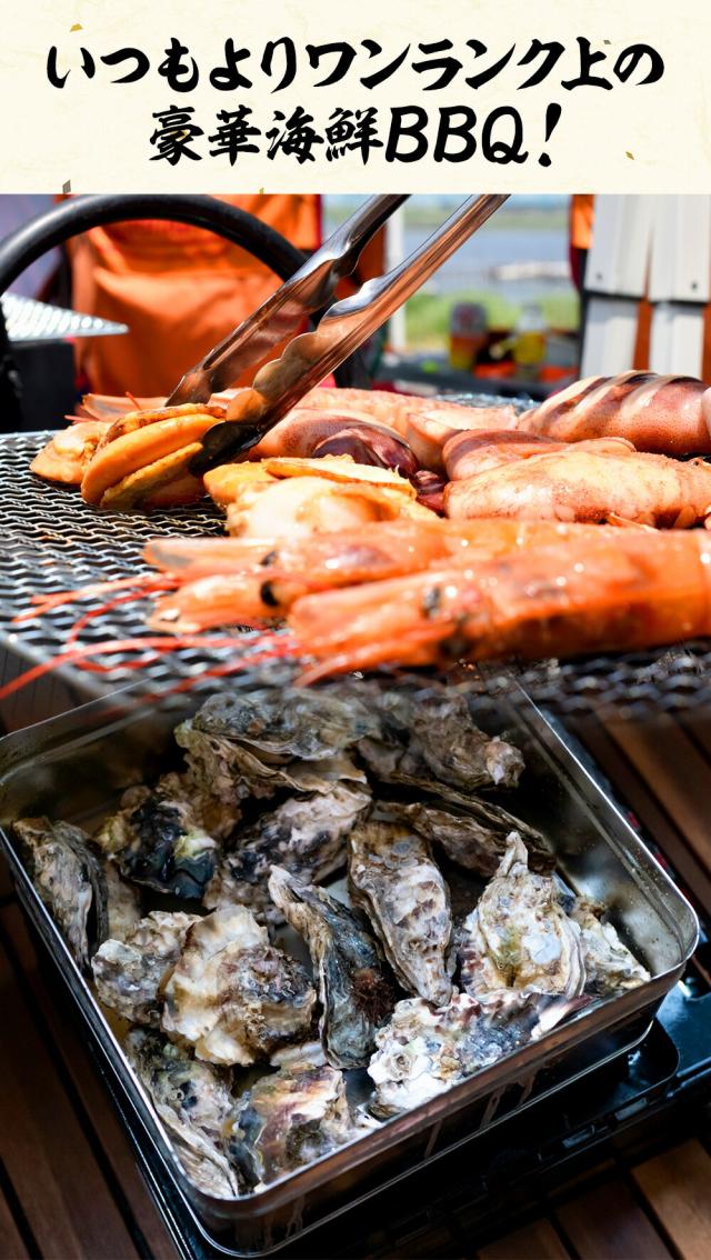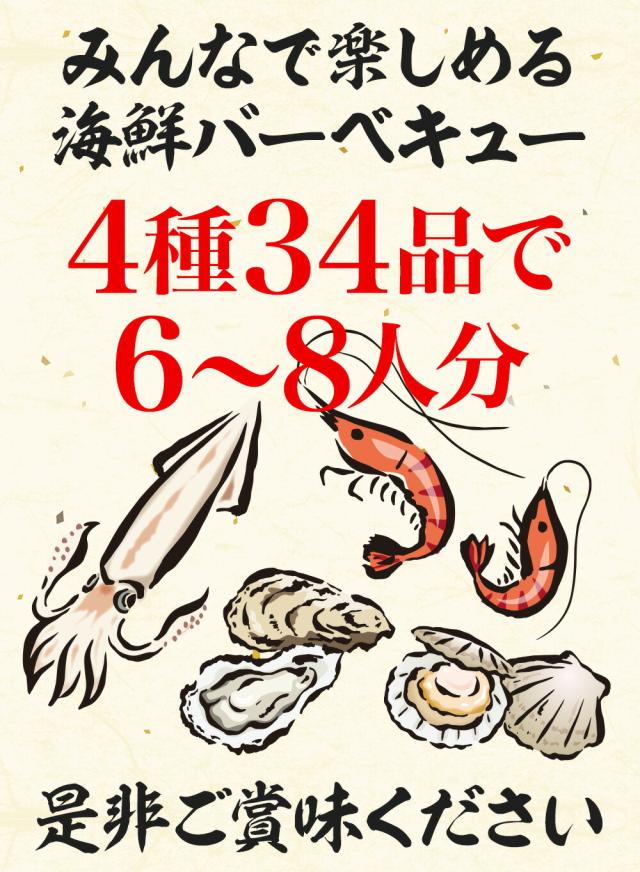 魚奏 超豪華 海鮮バーベキュー 4種類セット 赤エビ 10尾 イカ一夜干し 4枚 殻付き帆立 10枚 ブランド牡蠣 10枚 BBQ キャンプ 送料無料