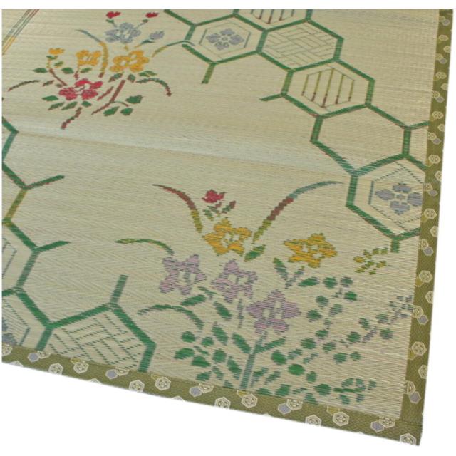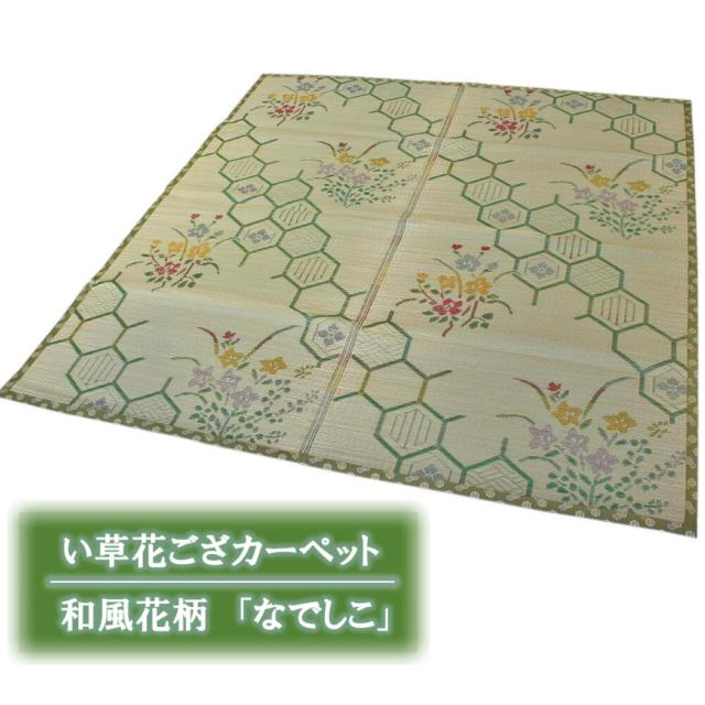 江戸間6畳 261x352cm 花ござ「なでしこ」伝統的な和風花柄のい草カーペット