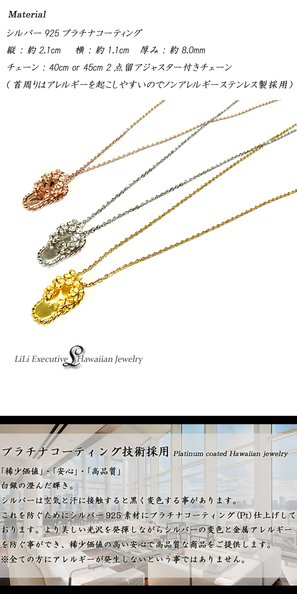 ハワイアンジュエリー リリ エグゼクティブ プラチナ仕上げ 靴 サンダル サーフ ネックレス レディース メンズ シルバー925 誕生日 記念 ラッピング対応 アレルギー対応