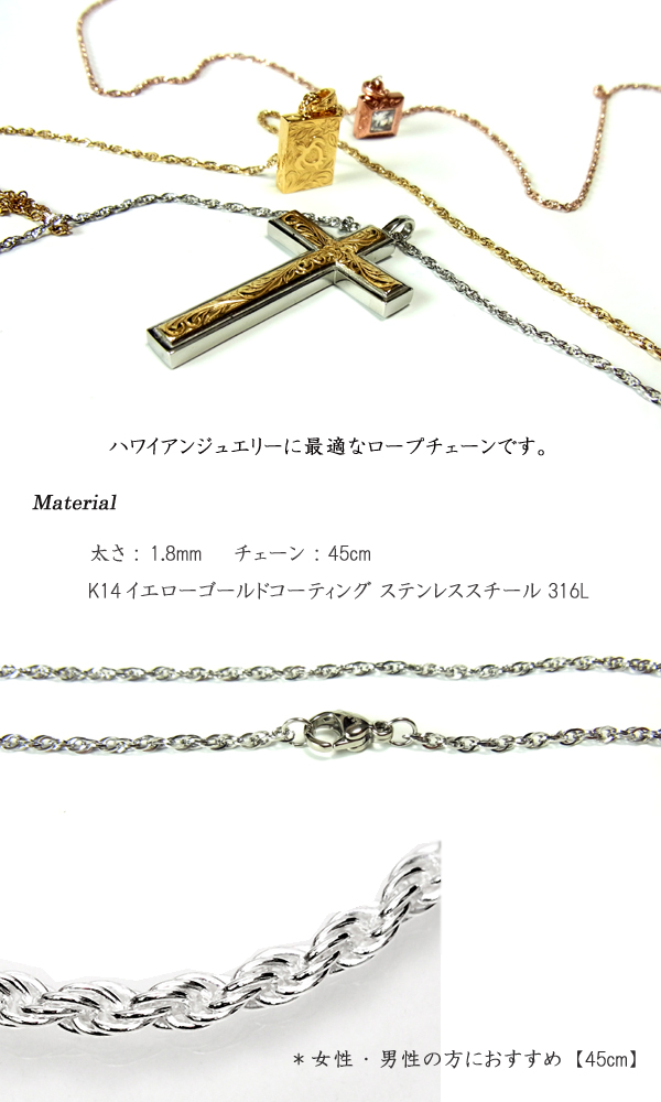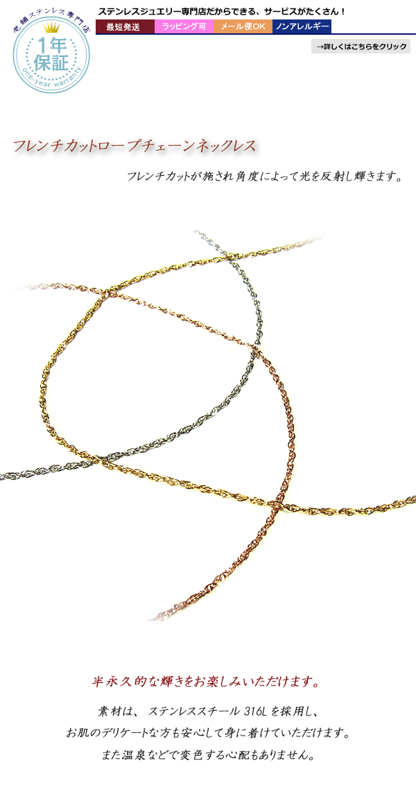 ハワイアンジュエリー チェーン フレンチカットロープ シルバー ピンクゴールド イエローゴールド K14コーティング ステンレス ラッピング対応 アレルギー対応
