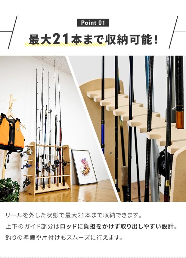 釣竿ラック 21本収納可能 ロッドスタンド ナチュラル 無塗装 幅76.5 奥行18 高さ65 釣り竿収納 釣竿 スタンド 釣竿 収納 釣り竿 つりざお 21本収納 リール掛け おしゃれ 木製 日本製 釣竿立て 収納棚 釣り竿スタンド