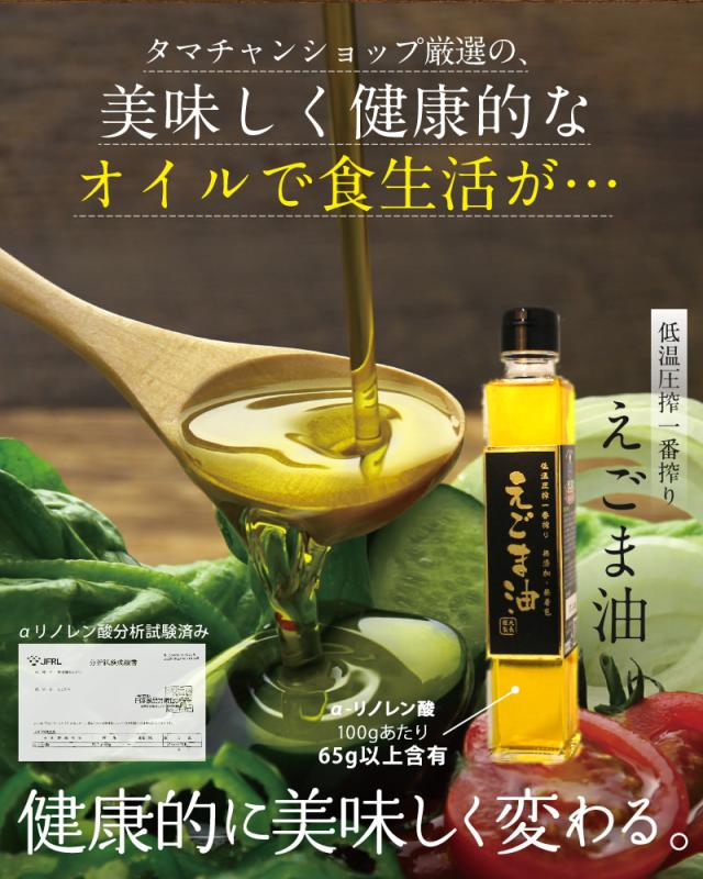 自然栽培した荏胡麻種子を乾燥後、低温圧搾製法で搾った一番搾りえごま油100%の未精製の商品です。新鮮な荏胡麻種を搾った一番搾り油は、黄金色をした香ばしい味わいです。