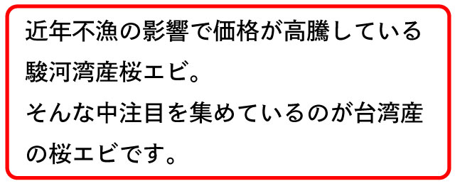 その国産桜えびと同品種の桜えびでお求め安い価格が台湾産の桜えび。