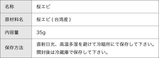 【原材料名】桜エビ(台湾産)
