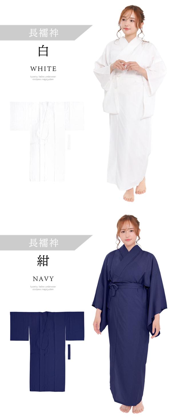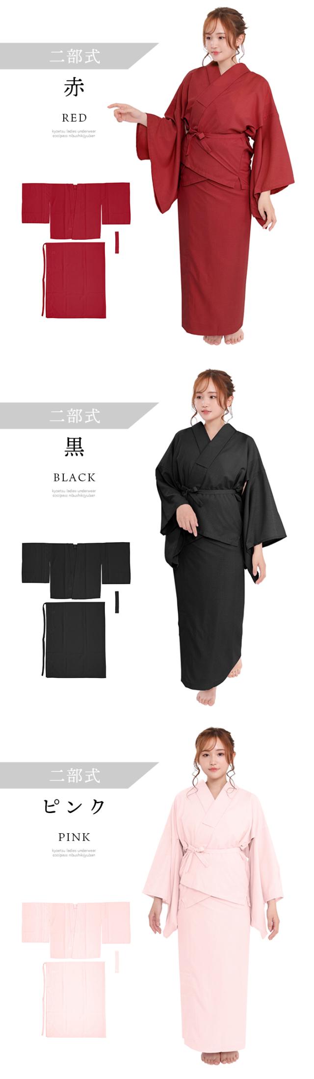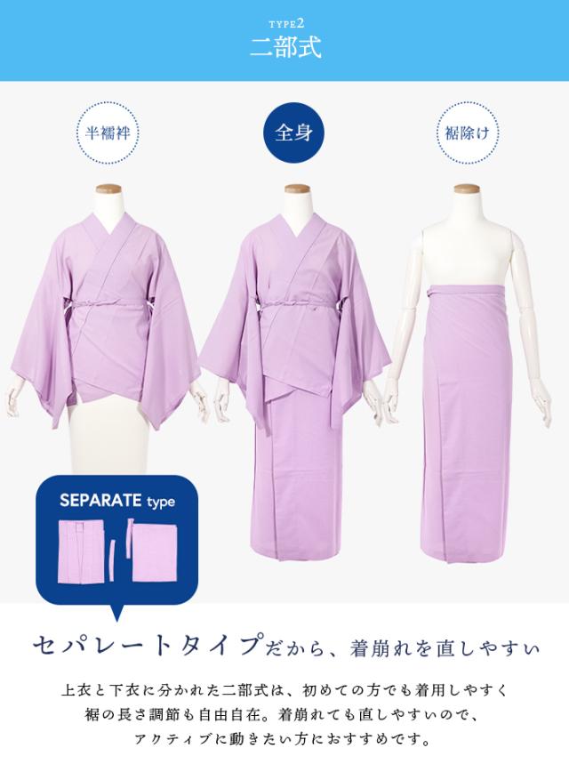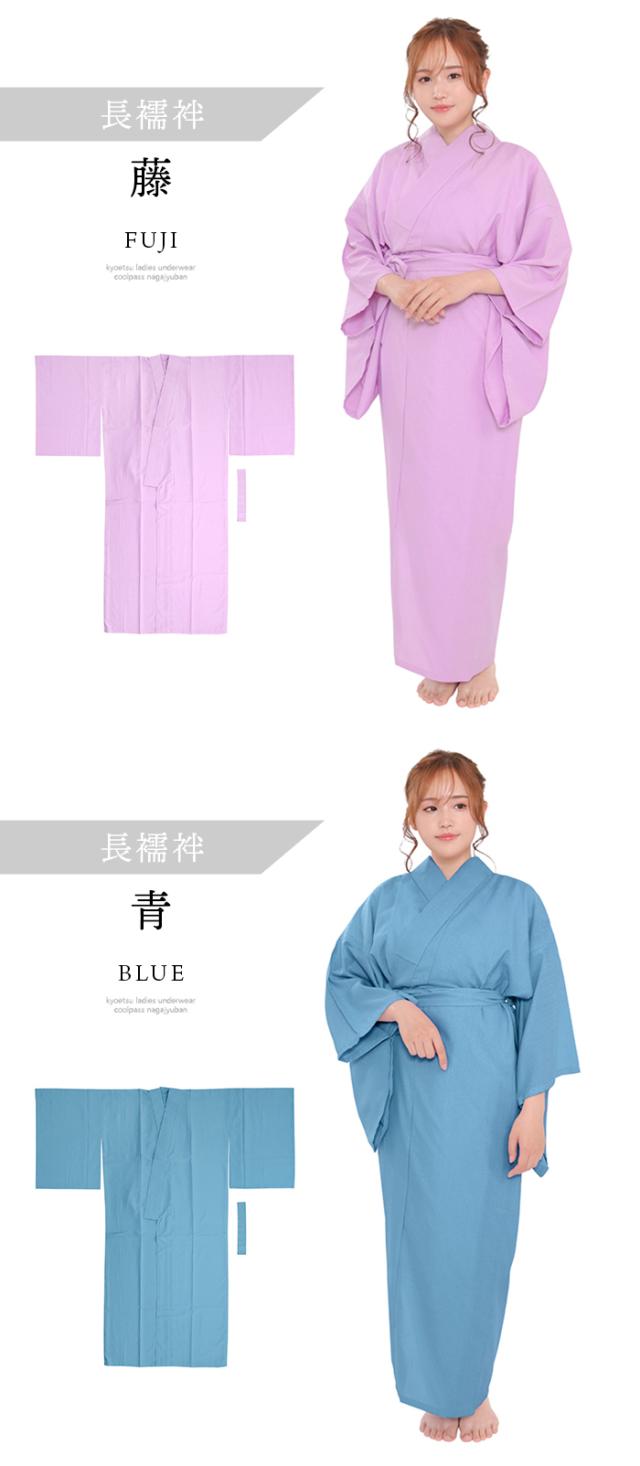 選べる2タイプ 長襦袢 二部式 半襟付 夏用 吸汗速乾 洗える カラー襦袢 クールパス 洗える長襦袢 レディース 長じゅばん 女性 和装下着 ポリ 浴衣 夏着物 7カラー 白 紺 藤 青 赤 黒 ピンク M L(rg)