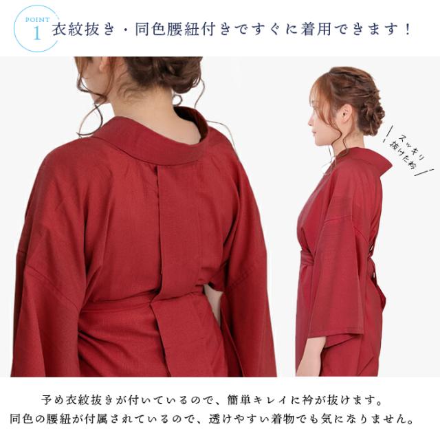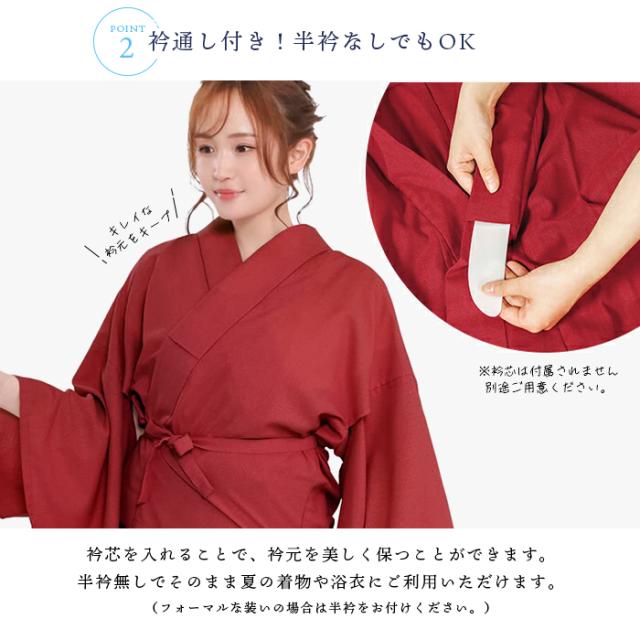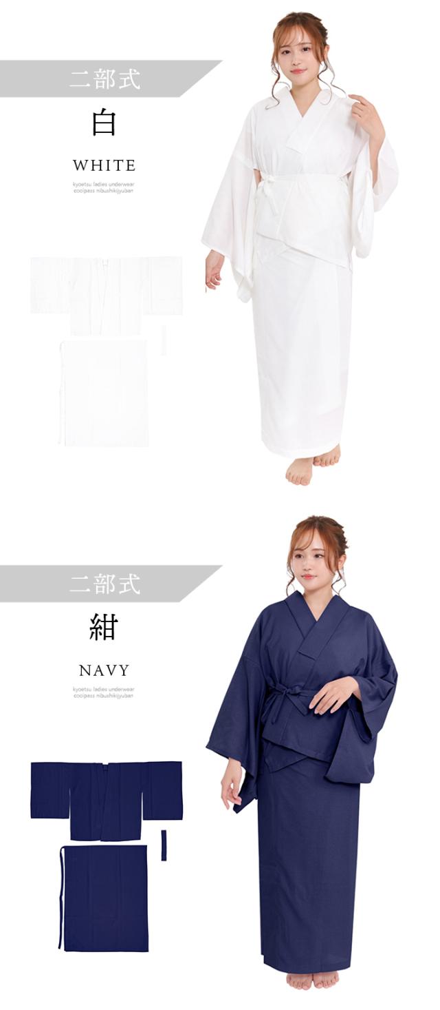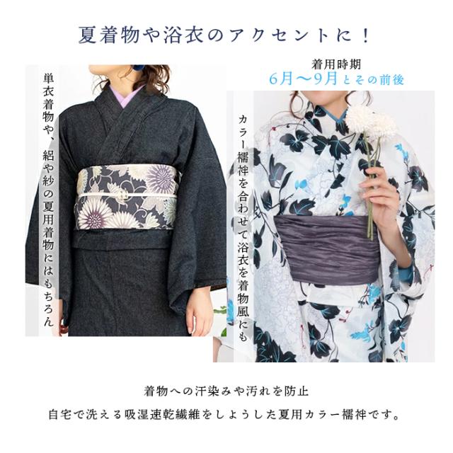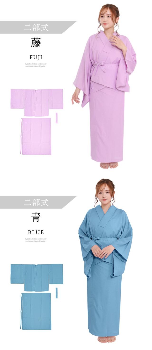 選べる2タイプ 長襦袢 二部式 半襟付 夏用 吸汗速乾 洗える カラー襦袢 クールパス 洗える長襦袢 レディース 長じゅばん 女性 和装下着 ポリ 浴衣 夏着物 7カラー 白 紺 藤 青 赤 黒 ピンク M L(rg)