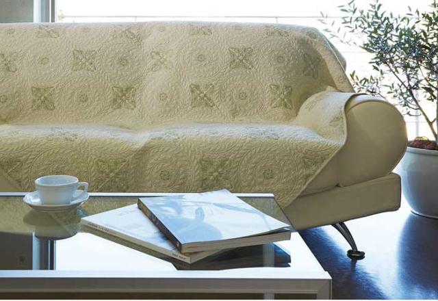 | 使い方はいろいろ。ソファーカバーやベッドスプレッド、電気カーペットカバー、こたつの上掛けなど 幅広くお使いいただけとっても便利。 中綿入りのふんわりしたタッチと綿100%のやさしい触り心地が魅力なキルトマルチカバー♪ | ||||||||