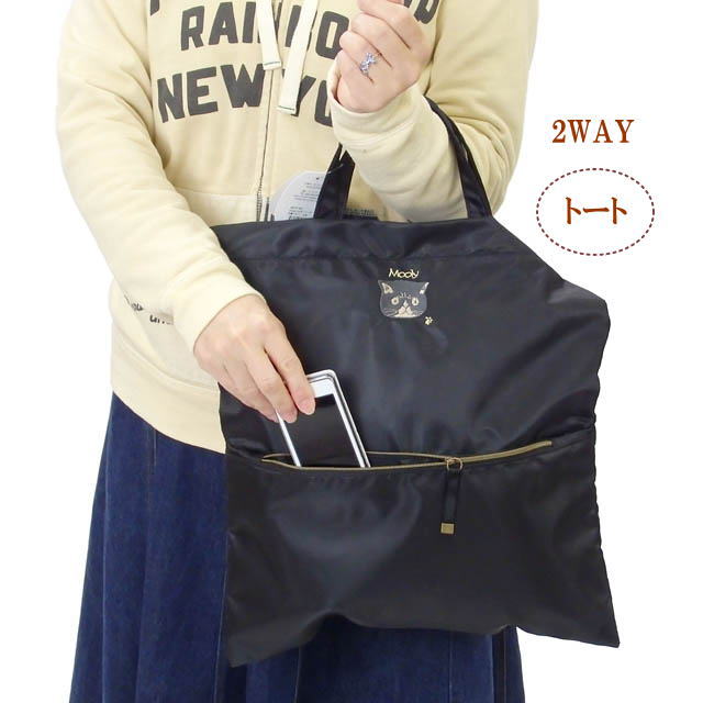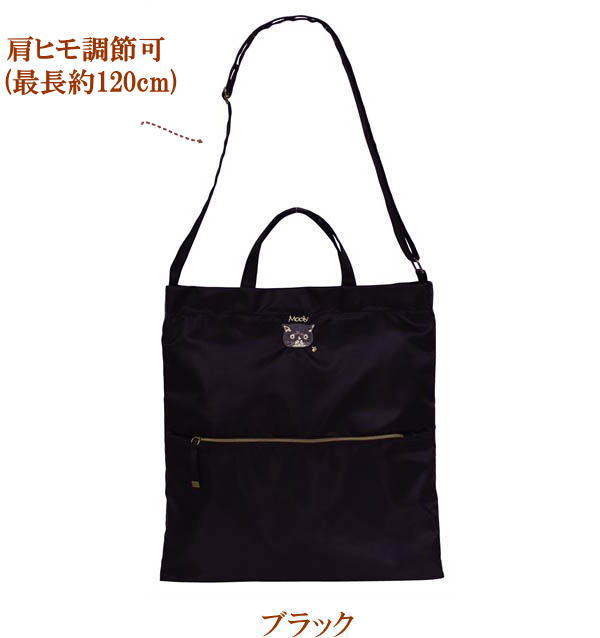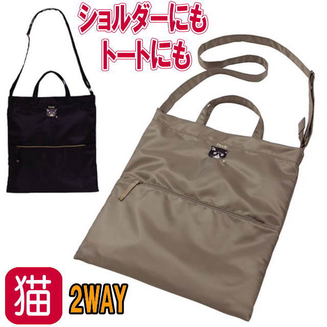 ノアファミリー 2WAY ショルダーバッグ トートバッグ モーリー 猫柄 布バッグ 軽量 猫刺しゅう 斜め掛け 猫雑貨 猫グッズ 女性