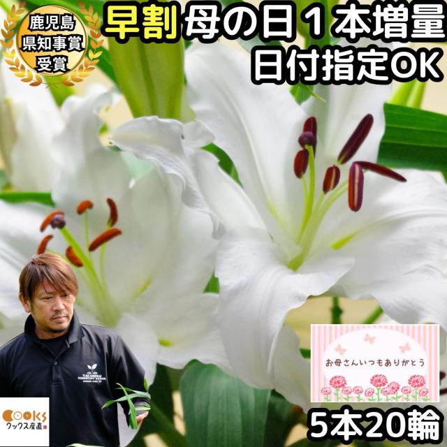 花 ユリ 花束 母の日 大輪 ギフト 白 5本 20輪 国産 誕生日 ゴージャス プレゼント