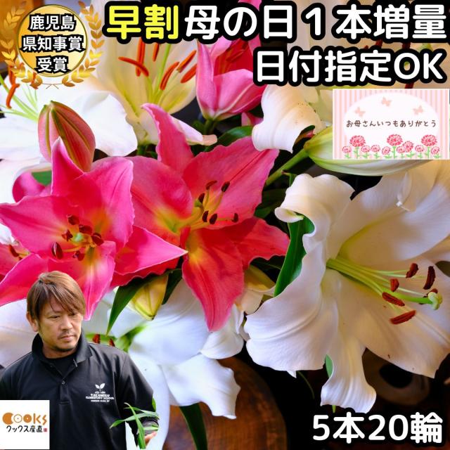 花 ユリ 母の日 花束 大輪 ギフト ミックス 5本 増量 20輪 国産 誕生日 プレゼント