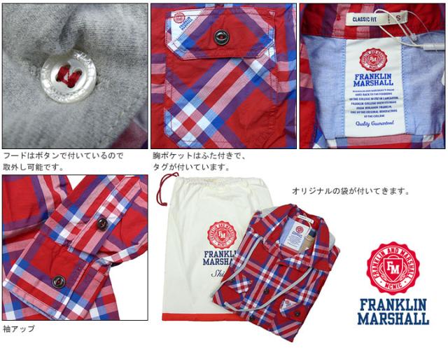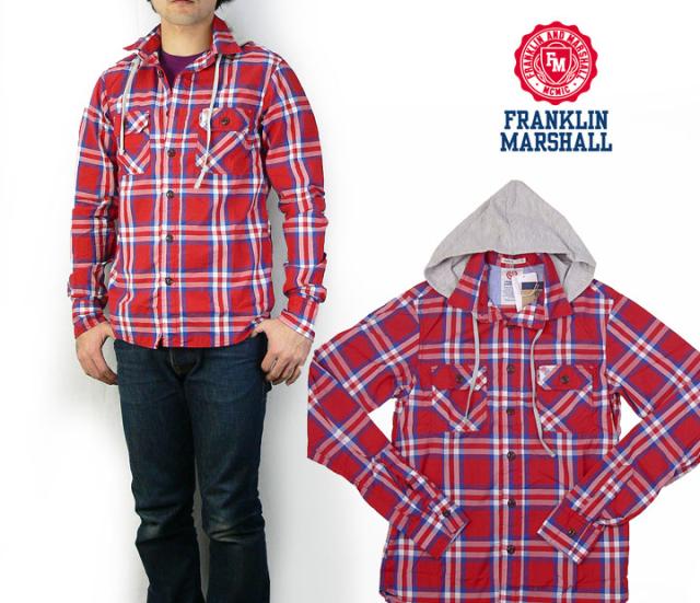 フランクリン マーシャル FRANKLIN&MARSHALL パーカー付き 長袖 チェックシャツ