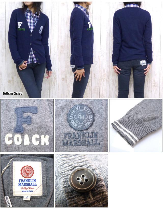 フランクリンアンドマーシャル Franklin&Marshall レディース カーディガン ウール・カシミア 混紡 ワッペン&刺繍 fm36182-6024