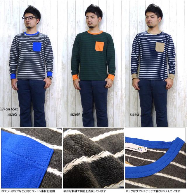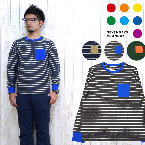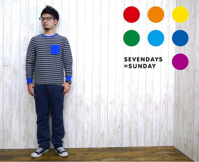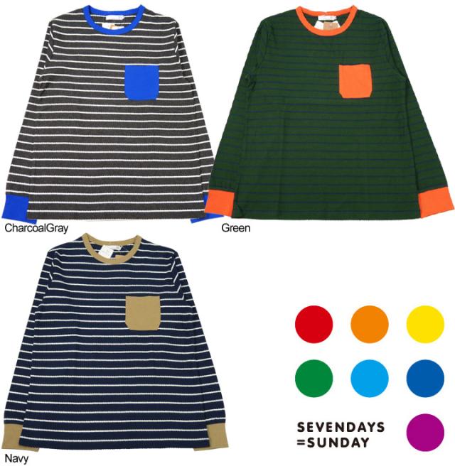 SEVENDAYS=SUNDAY セブンデイズ=サンデイ ロングスリーブ Tシャツ ステッチ ボーダー ポケット